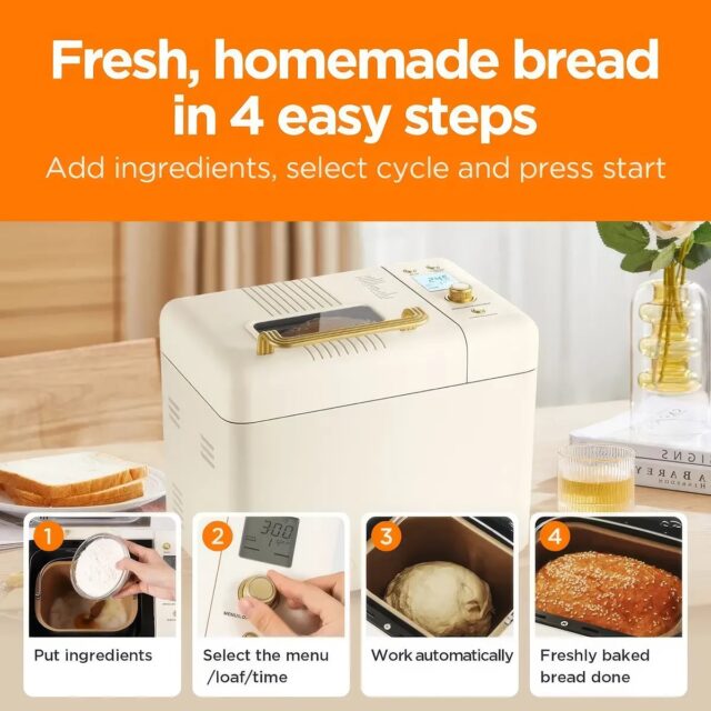 • Healthier & Fresher Bread: Craft healthier bread with stainless steel design, a 15-hour delay timer, and a 1-hour automatic keep warm function for freshly baked bread whenever you desire.