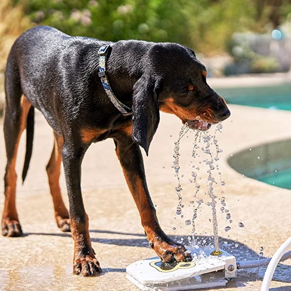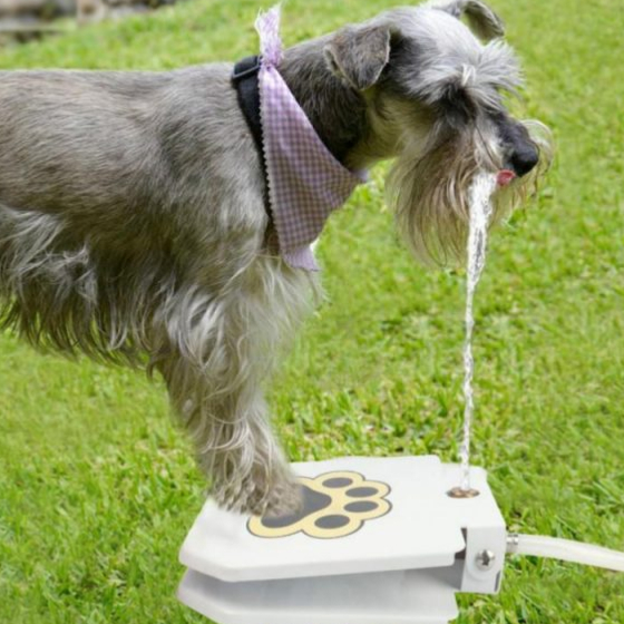Teach your dog to step onto the printed-paw pattern of the water fountain to dispense water. Each purchase includes some training instructions you can follow to ease your pooch into using the fountain. With time, he or she will be stepping on the fountain pedal naturally for a sip of water!