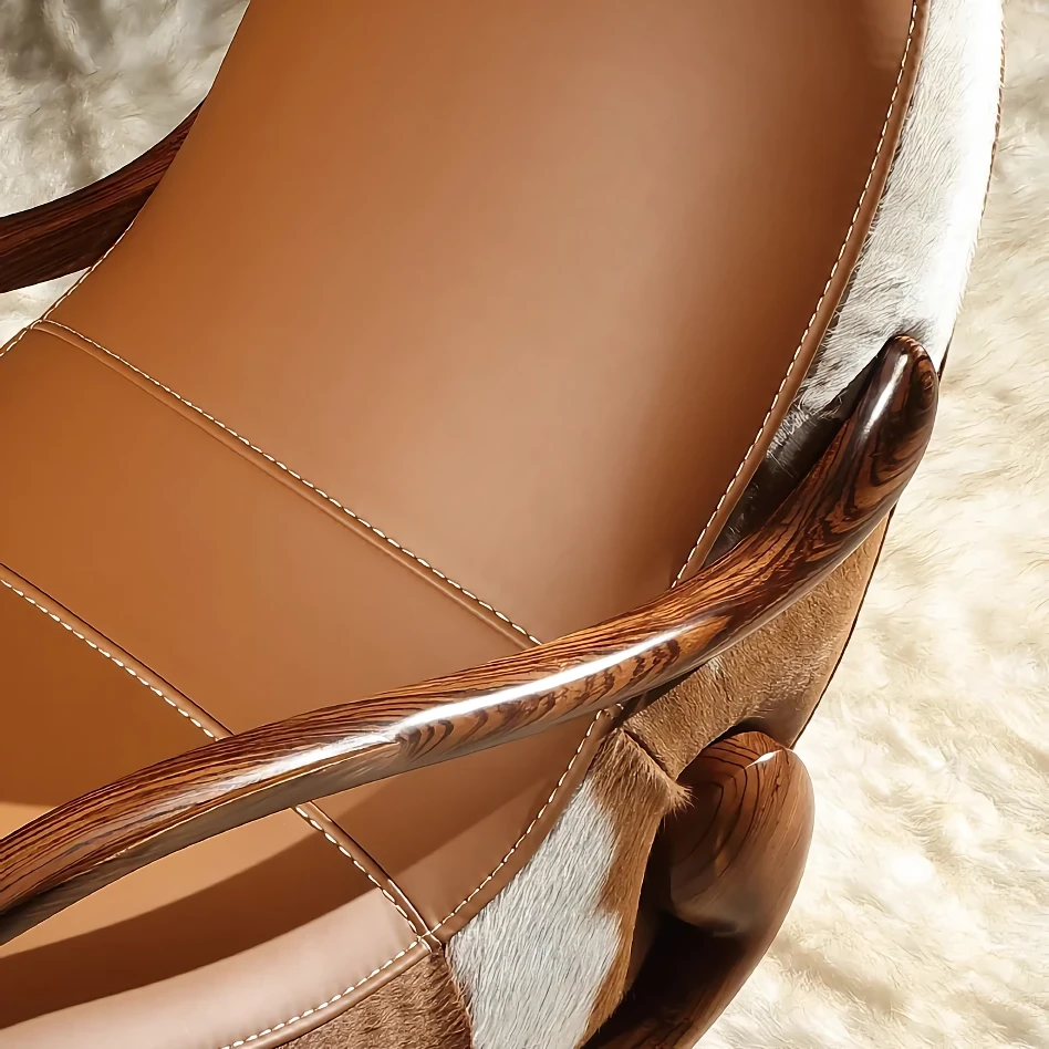 Elegant Ebony Genuine Leather Rocking Chair: Modern Minimalist Luxury Chaise Lounge