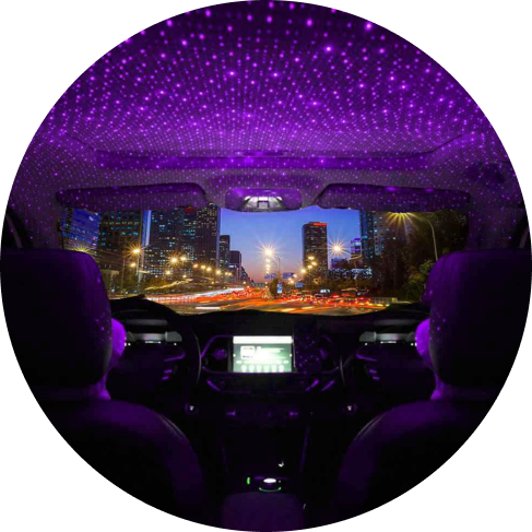 Our USB Ceiling Night Light comes in a choice of red or purple LED light. When turned on, you can turn the dial to change lighting effects and patterns, from stars to dots to constellation-like projections.